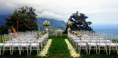 Der malerische Ort Ravello liegt in 350 Meter über dem Meer und thront hoch über der Amalfiküste mit einem traumhaften Ausblick. Man erreicht den Ort von Amalfi aus über eine kurvenreiche Straße über das “Tal der Drachen“. Ravello hat eine wunderbare Hochzeits Location die sich „Garten der Prinzessin von Piemonte“ nennt. Es handelt sich um einen kleinen Park (Bild oben) mit traumhaften Blick über die Amalfiküste. Standesamtskosten: Mo. – Fr. € 650,00 und samstags € 850,00